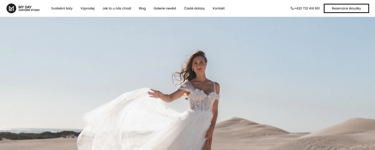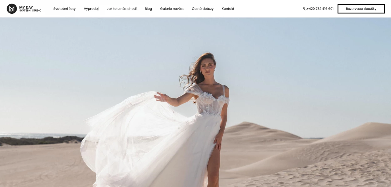 Trochu netypicky jsme u svatebního studia My Day zpočátku neměli žádné jasné zadání. Naše spolupráce totiž navázala na nový web, který jsme salonu připravili v roce 2021, a vyplynula z potřeby přirozeně rozvíjet web. A tak se od roku 2024 staráme o rozvoj webu především z pohledu dohledatelnosti vyhledávači a celkové autoritativnosti webu (přestože často doporučujeme i další vylepšení, která se SEO souvisejí trochu vzdáleněji).