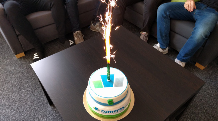 Na oslavě padlo poslední překvapení toho dne. Ve firmě máme totiž jednoho exota, který to s Comertem táhne od prvního dne založení, takže si za tuto 5letou misi vysloužil dárek v podobě značkových hodinek Tissot s firemním věnováním. Tímto přejeme EmSíčkovi další skvělou pětiletku a Comertu jakbysmet.