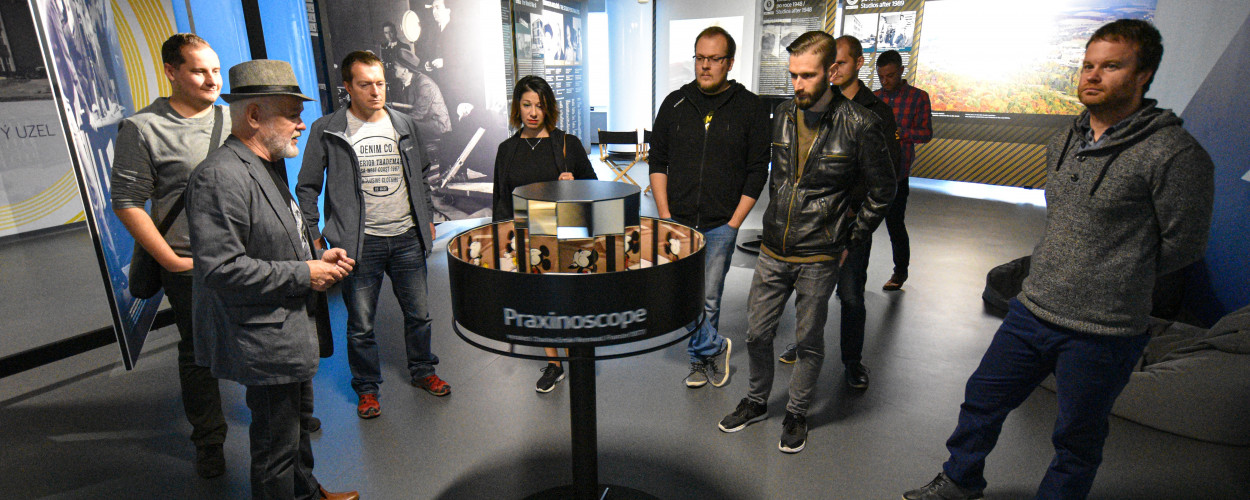 Mohli jsme si zde vyzkoušet i roztočit praxinoskop a shlédnout v něm krátký animovaný příběh. Praxinoskop byl patentován v roce 1888 a řadí se mezi první známé animační metody (ještě dlouho před tím, než přišel první animovaný film).