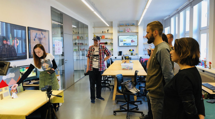 Po exkurzi jsme se zúčastnili krátkého úvodu do stop-motion animace a hned se pustili do vymýšlení vlastních snímků, které jsme následně vyprodukovali za pomocí nově nabytých znalostí.