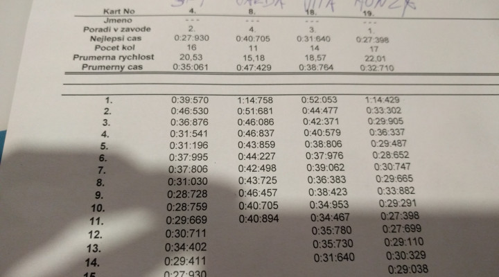 Ačkoli někteří z kolegů potlačili pud sebezáchovy do té míry, že pedál brzdy pro ně byl jen zbytečnou zátěží, absolutním vítězem se nakonec stal Vašek Štefan s nejrychlejším časem 26,25 sekund na kolo. Sláva vítězi a čest zbytku závodního pole.