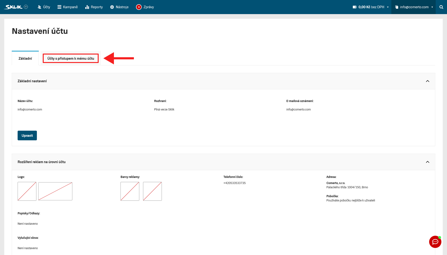 Sklik – přidělení přístupu