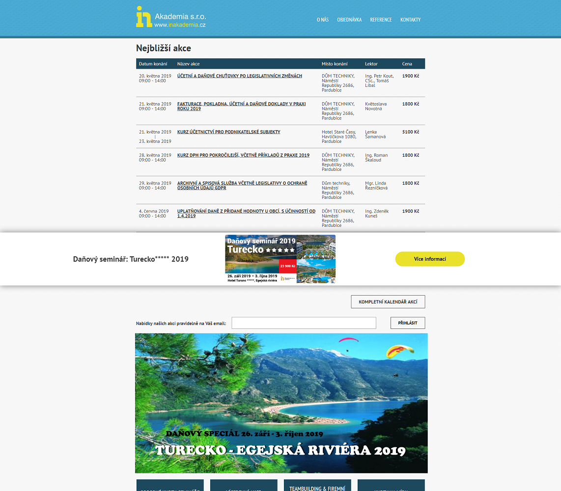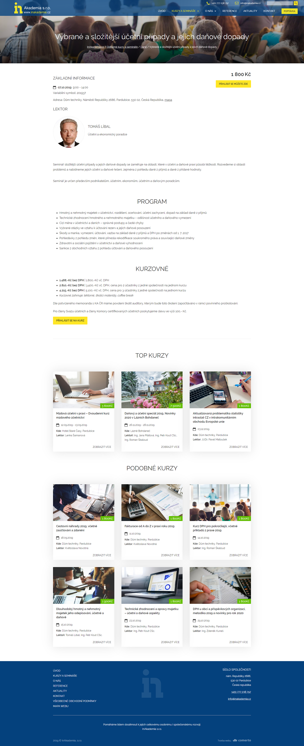 InAkademia již bezmála dvě dekády pořádá kurzy, semináře a školení v oblastech ekonomiky, práva, financí, účetnictví nebo personalistiky a lidských zdrojů.