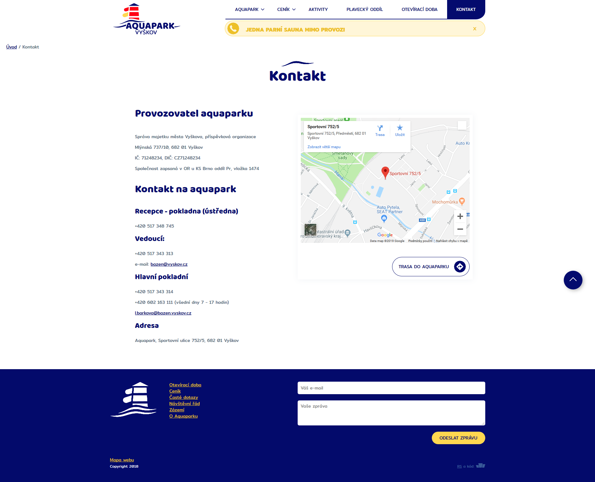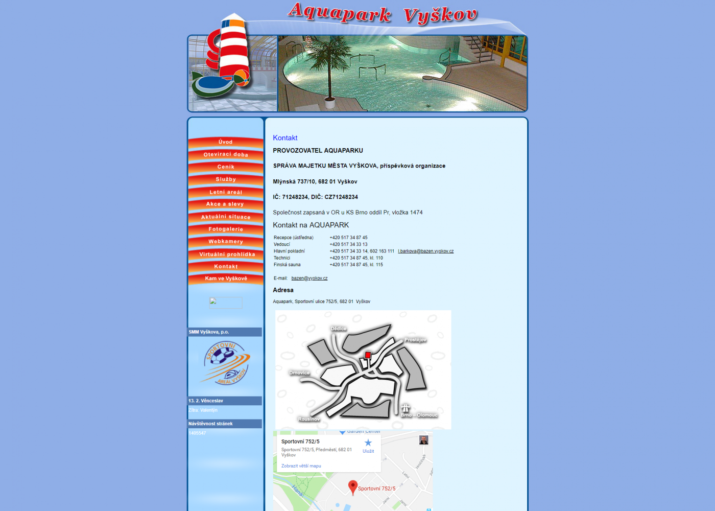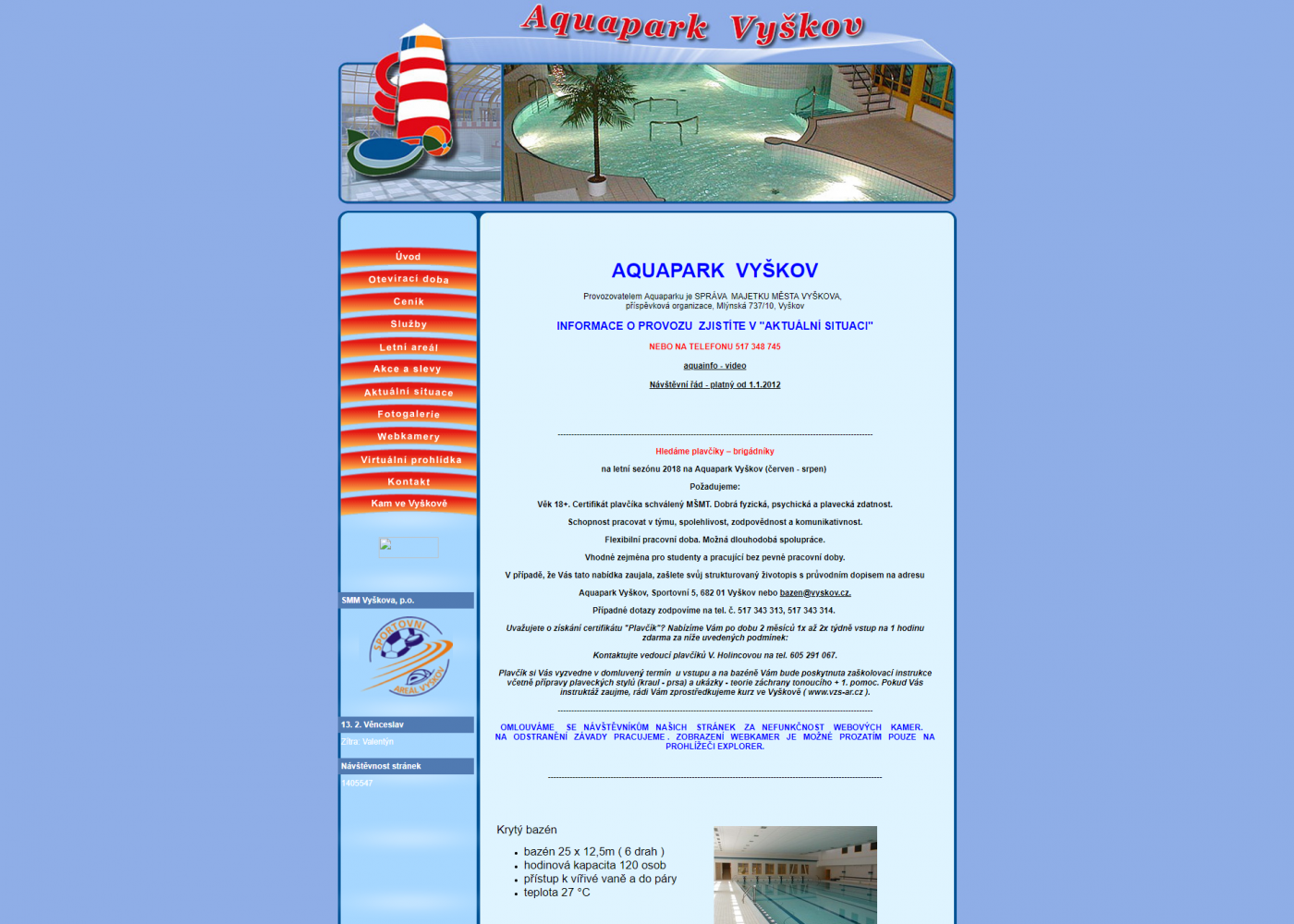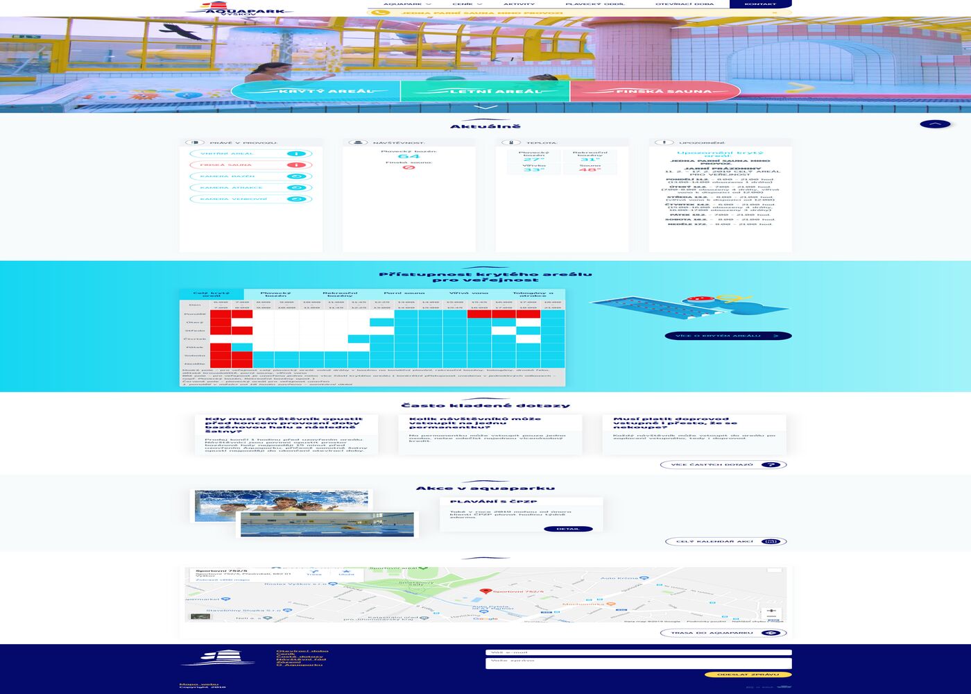 - Synchronizované vynášení aktuálních dat o teplotě, obsazenosti jednotlivých částí Aquaparku a jejich provozu z interního systému do rozhraní webu.
