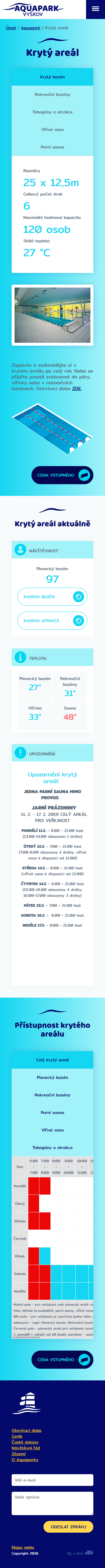 - Rozvrh přístupnosti krytého bazénu editovatelný z administračního rozhraní webu.