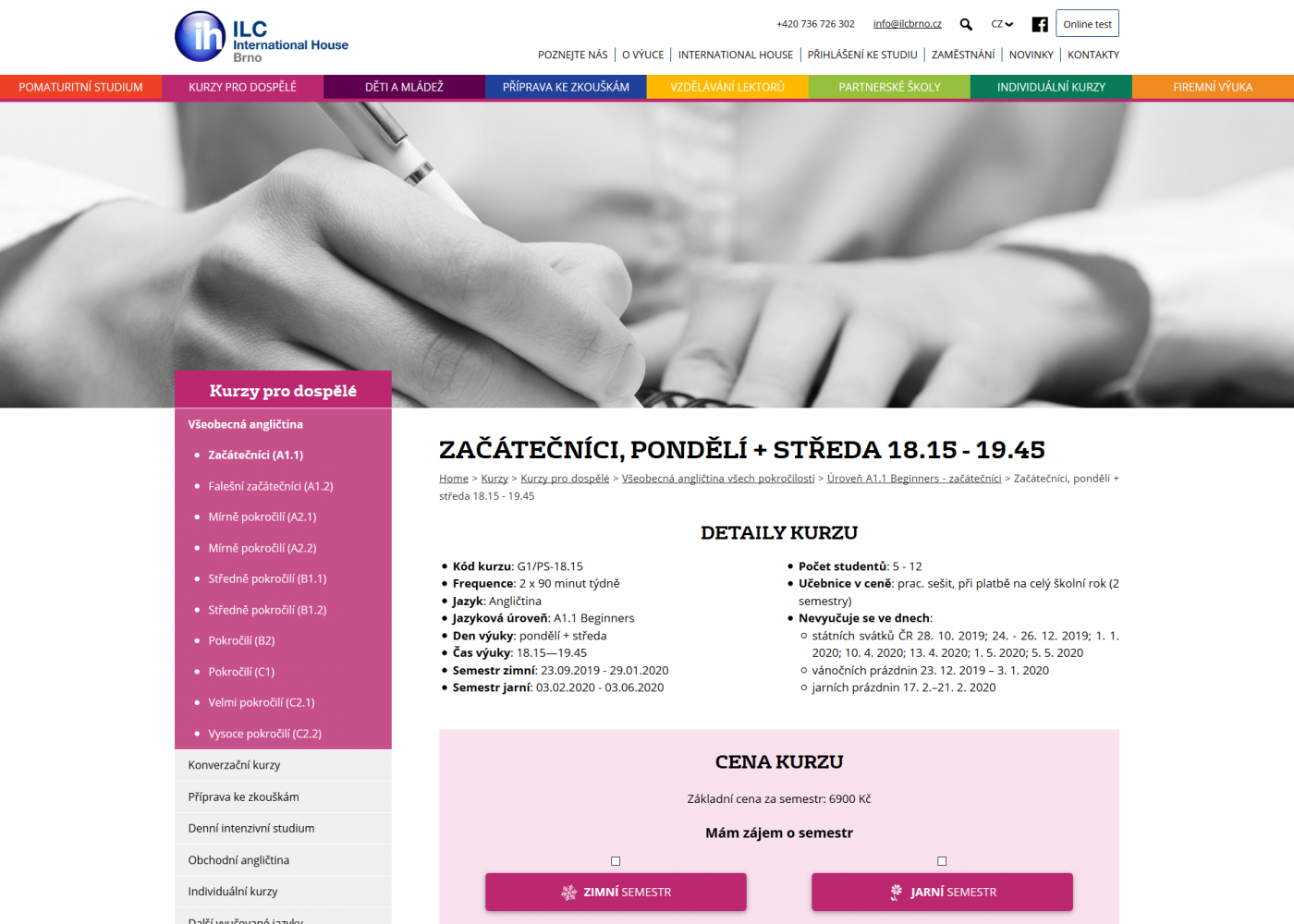 Kalkulátor aktuálního kurzu – cena reagující na zvolené parametry zadané každým zájemcem přímo v detailu kurzu.