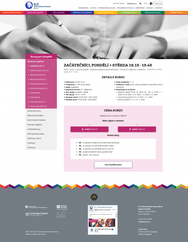 Poté, co došlo ke sloučení s jazykovou školou Lingua Centrum v roce 2025, značka International House Brno zanikla. Samozřejmě není možné ze dne na den vypnout web www.ilcbrno.cz. Místo toho bude web ještě nějaký čas v provozu a pro klienta provedeme jen jisté grafické úpravy.