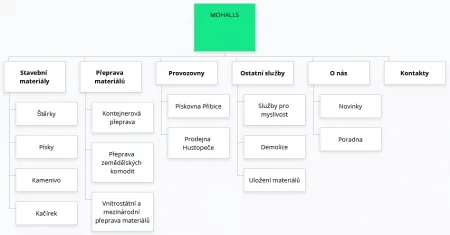 Jakmile jsme zjistili všechny tyto potřebné náležitosti, pustili jsme se do prvních náčrtů. Podrobně jsme rozepsali požadavky klienta, cílovou skupinu nebo jaké produkty a služby prodávají. Dále jsme si rozvrhli strukturu webu (wireframe), navigační menu a až 7 typologických stránek (např. homepage, výpis, produkt nebo kontakty) i s předpokládaným obsahem a rozmístěním jednotlivých prvků. Na základě takto sepsané specifikace jsme vytvořili komplexní zadání pro grafika.
